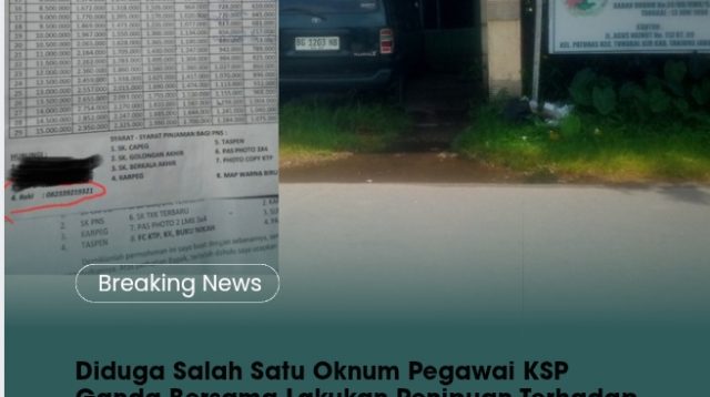 TributeNews86.com, Tanjab Barat - Diduga salah satu Oknum pegawai Koperasi Simpan Pinjam (KSP) Ganda Bersama melakukan […]